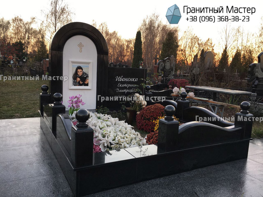 - Используемый камень: черный гранит габбро "Букинский", Украина и белый мрамор "Sivec", Греция